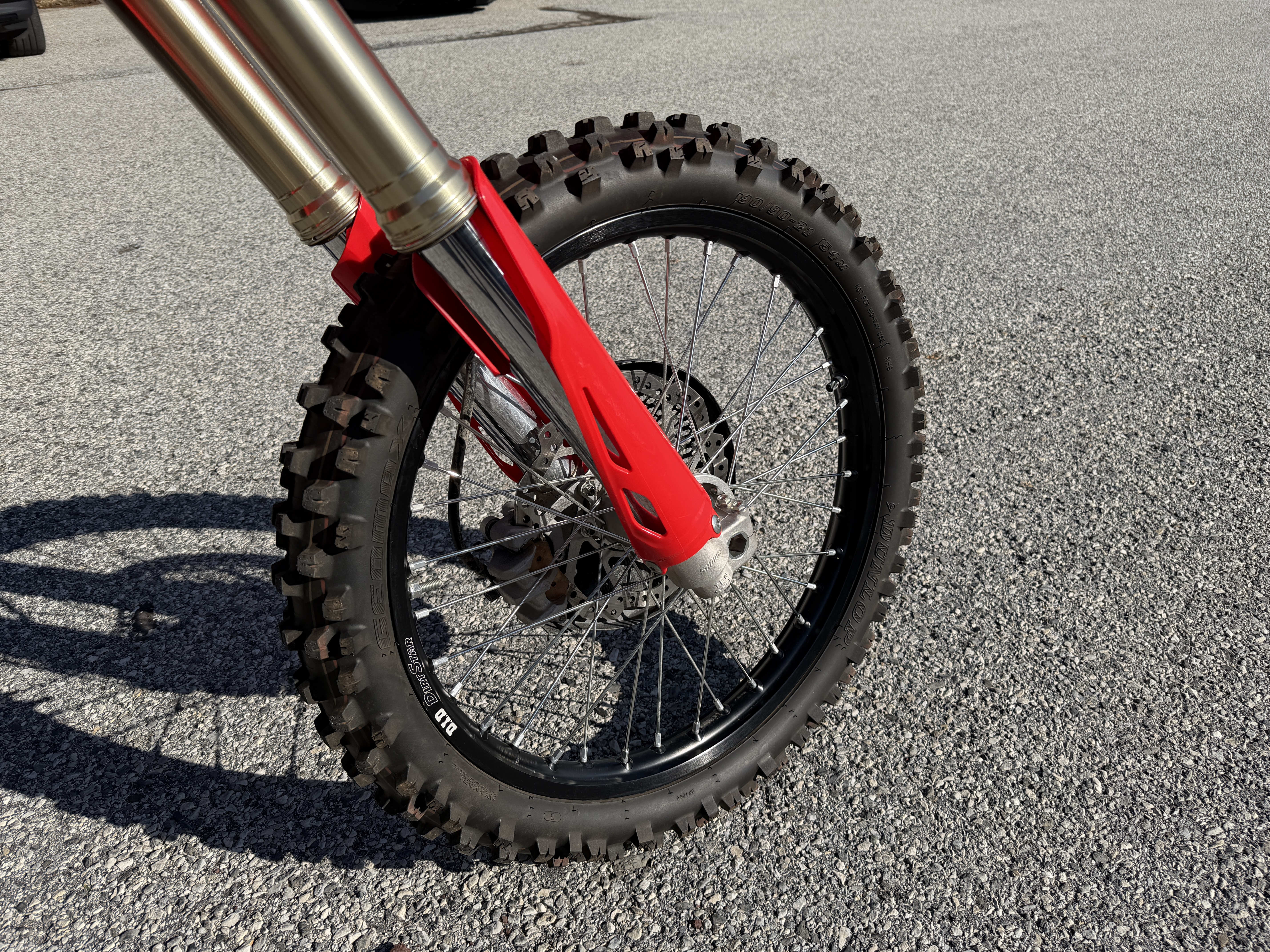 - The CRF250RX’s Dunlop Geomax tires are specially designed for enduro use. The AT81 tires are spec’d at 90/90-21 for the front and 110/100-18 for the rear. You read that right: the CRF250RX rolls on an 18-inch rear wheel.