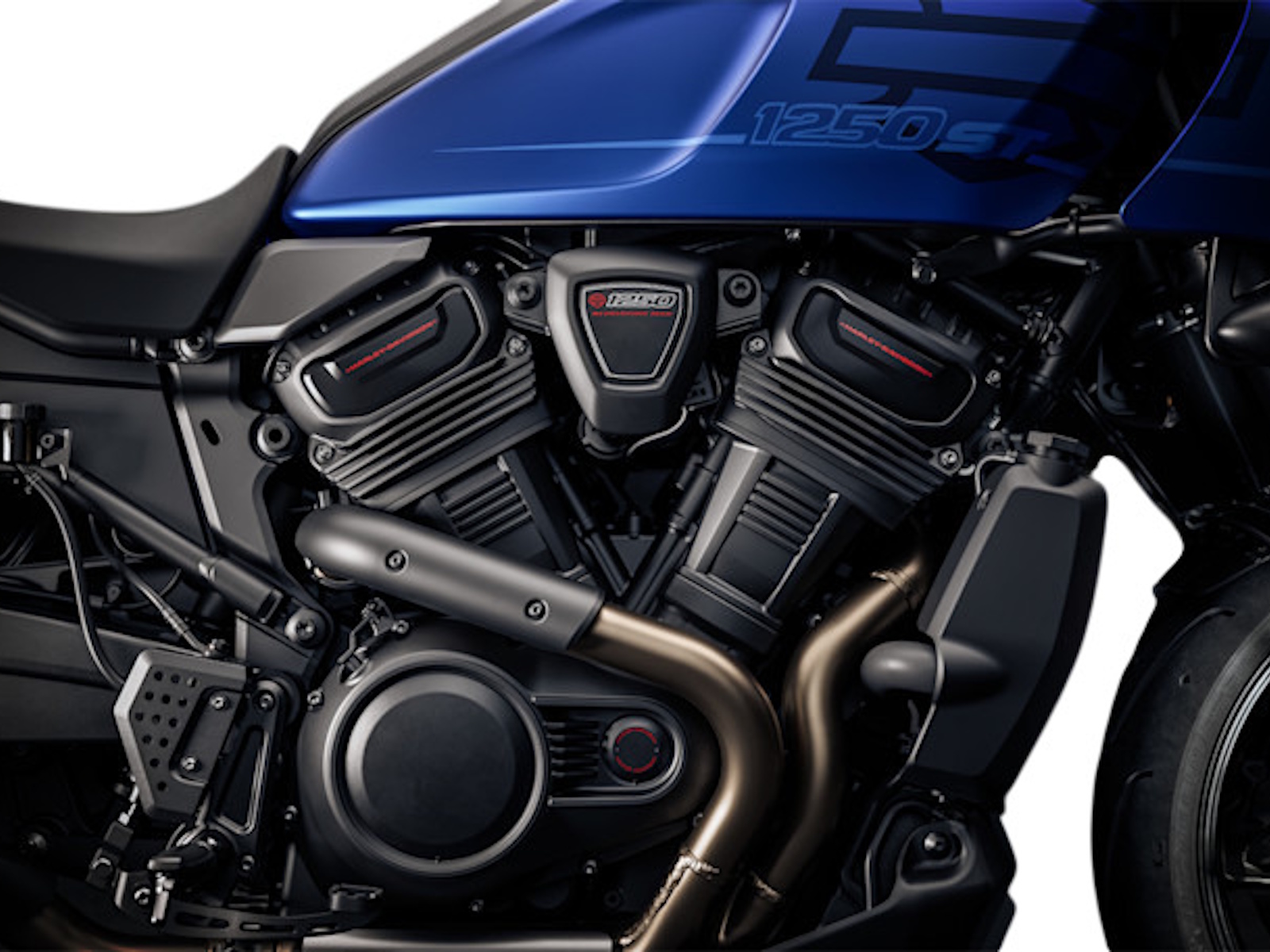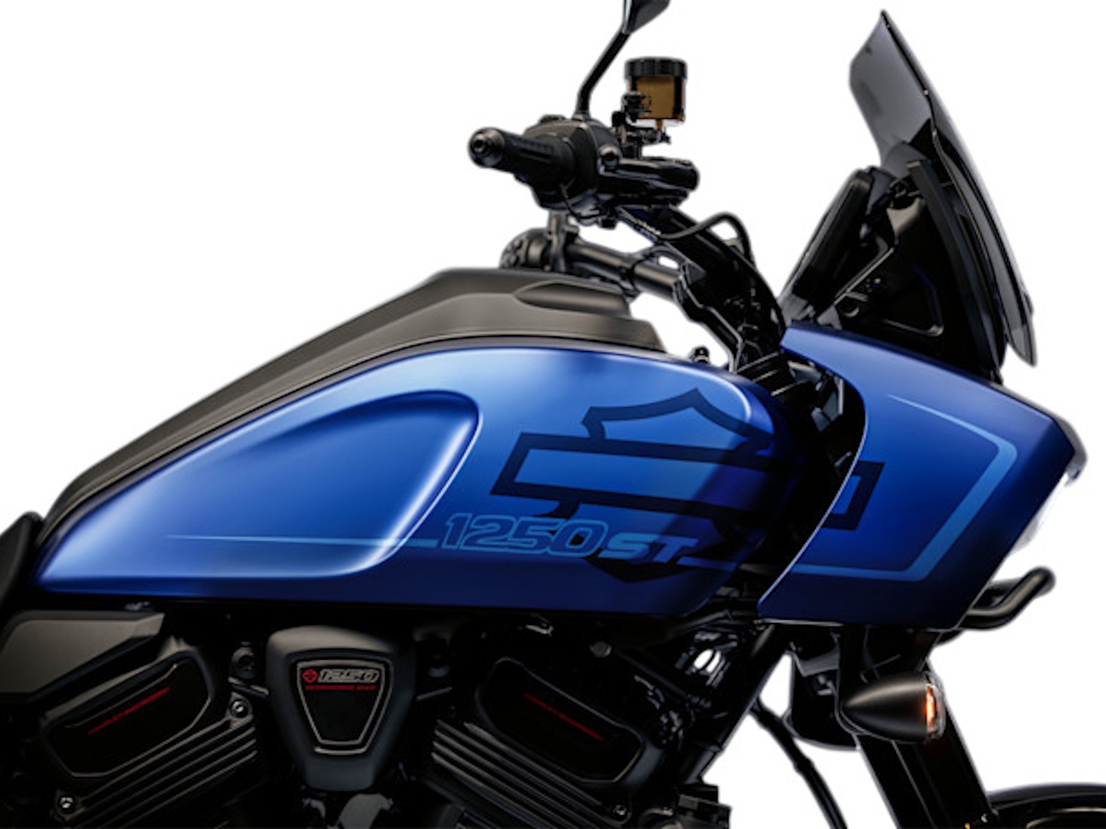 The italicized Bar & Shield and 1250 ST badging flow with a tapered “hockey stick” graphic that ties the fairing and tank together in one clean, continuous line.