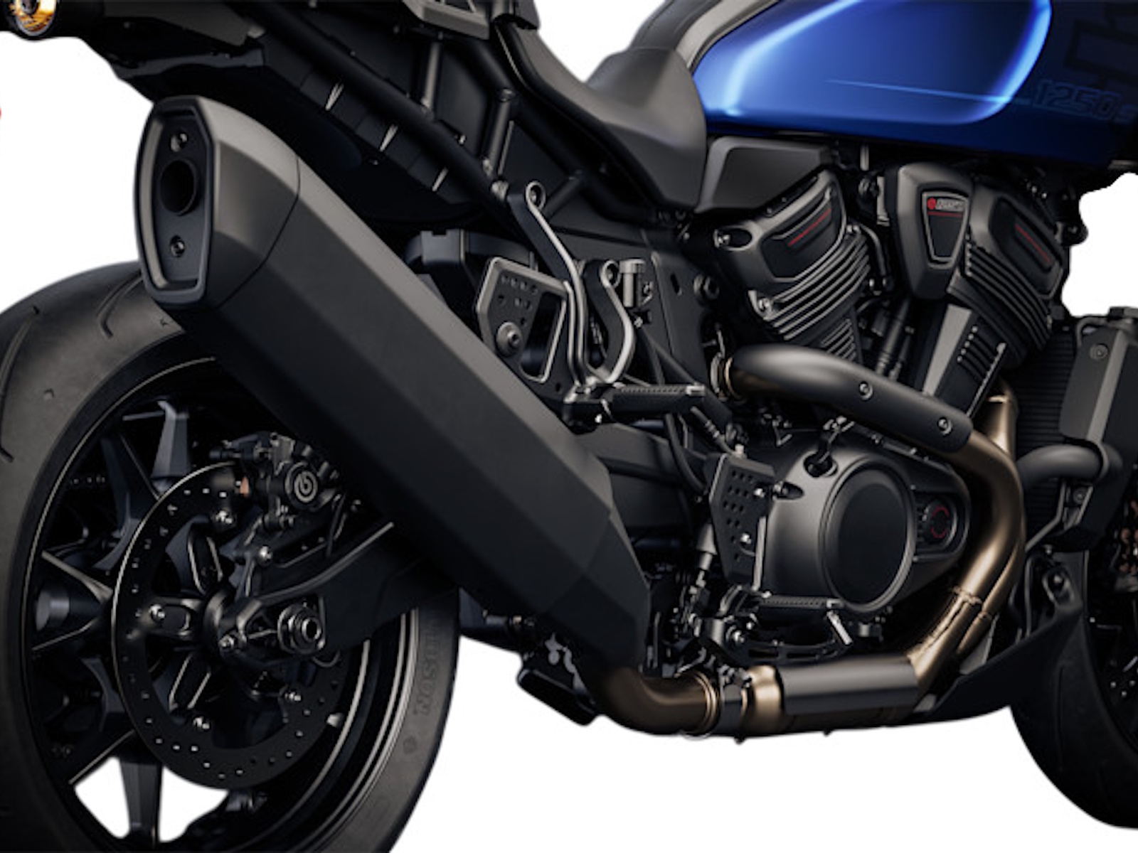 A darker, sleeker look with black finishes and non-highlighted fins, matched to a lighter exhaust that trims weight and sharpens the bike’s street stance.