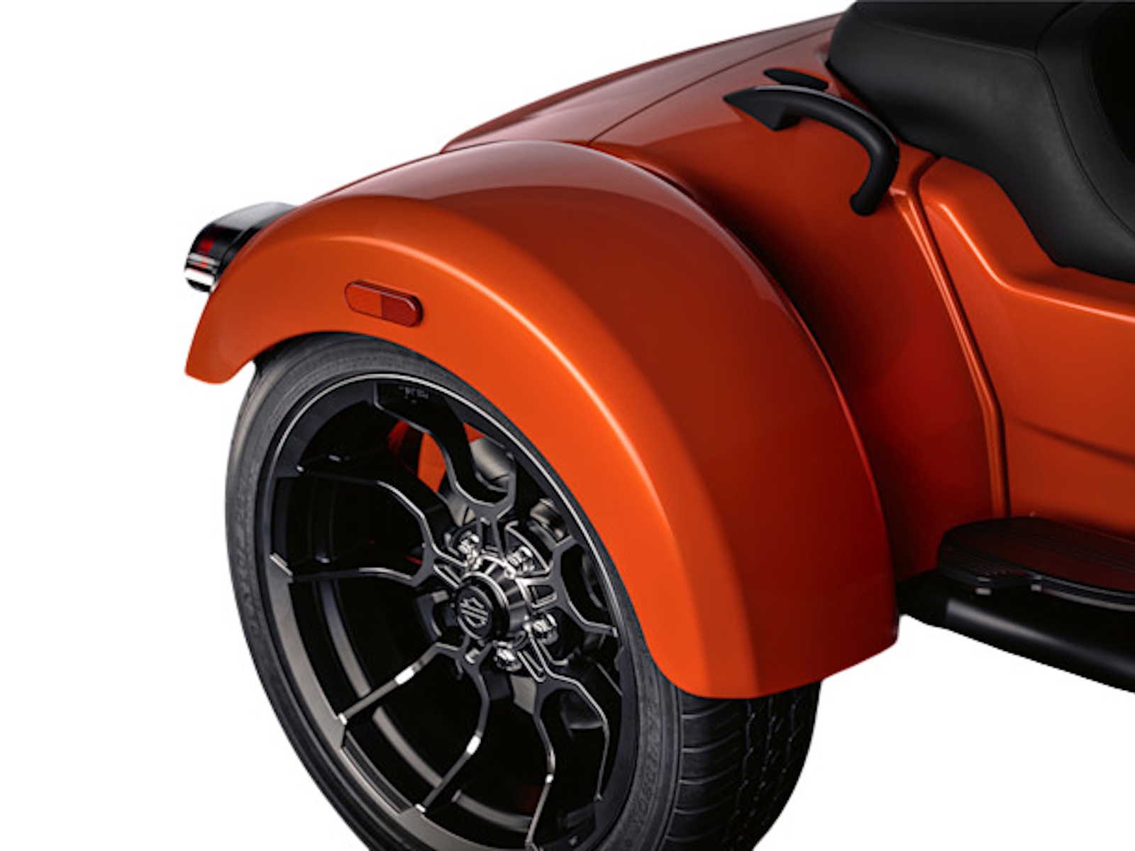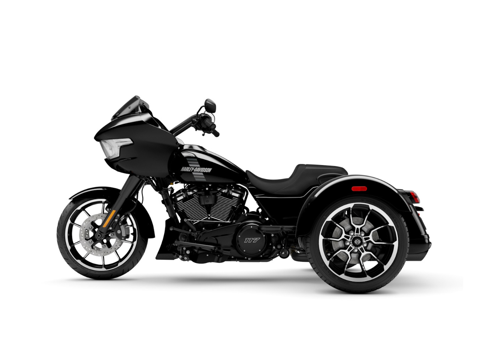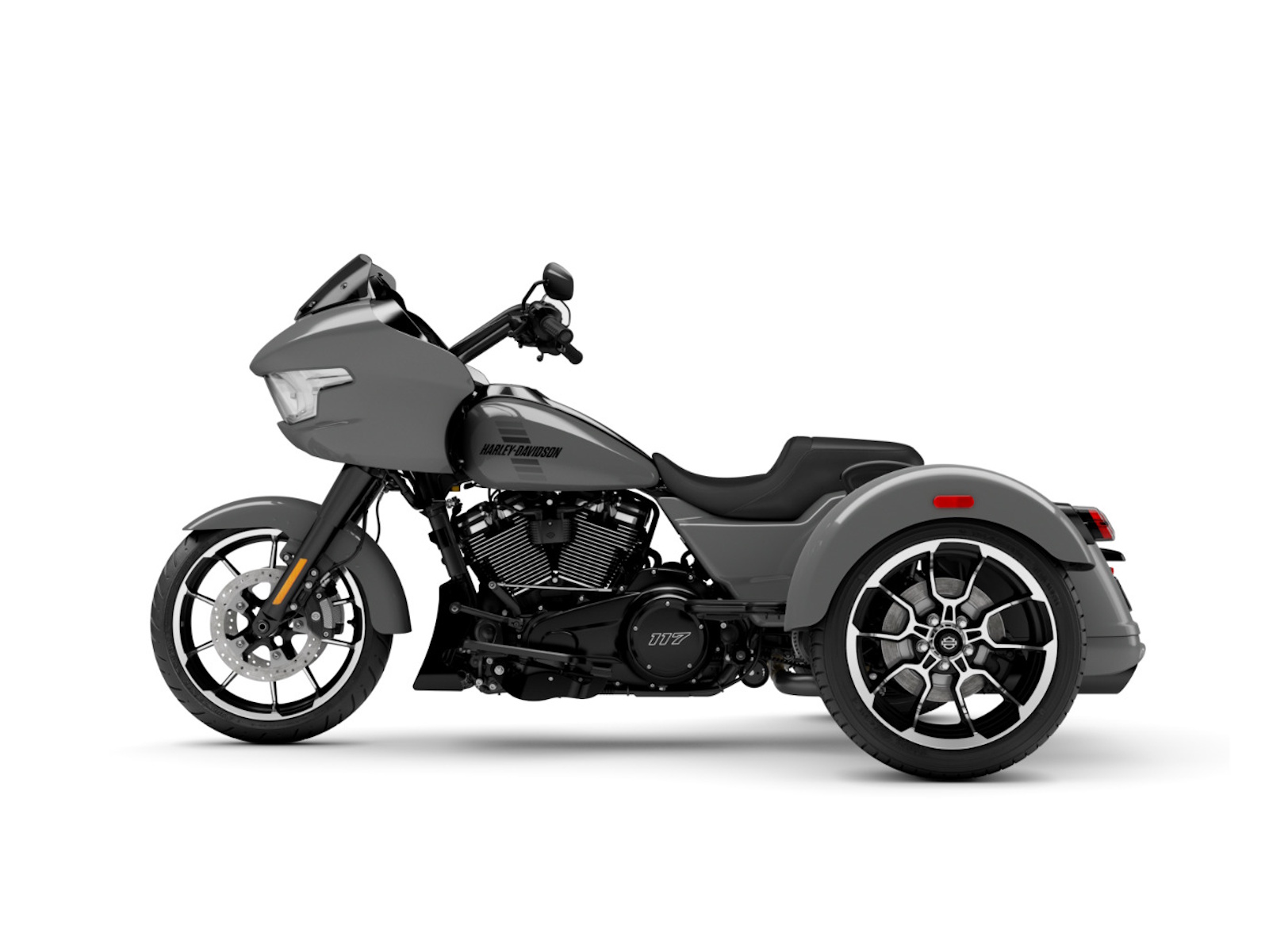 Wider, reshaped rear fenders flow clean with the trike’s new chassis, giving the Road Glide 3 a broader stance and tougher look from every angle. Subtle surface changes and tighter fitment tie the design together with a low, purposeful attitude.
