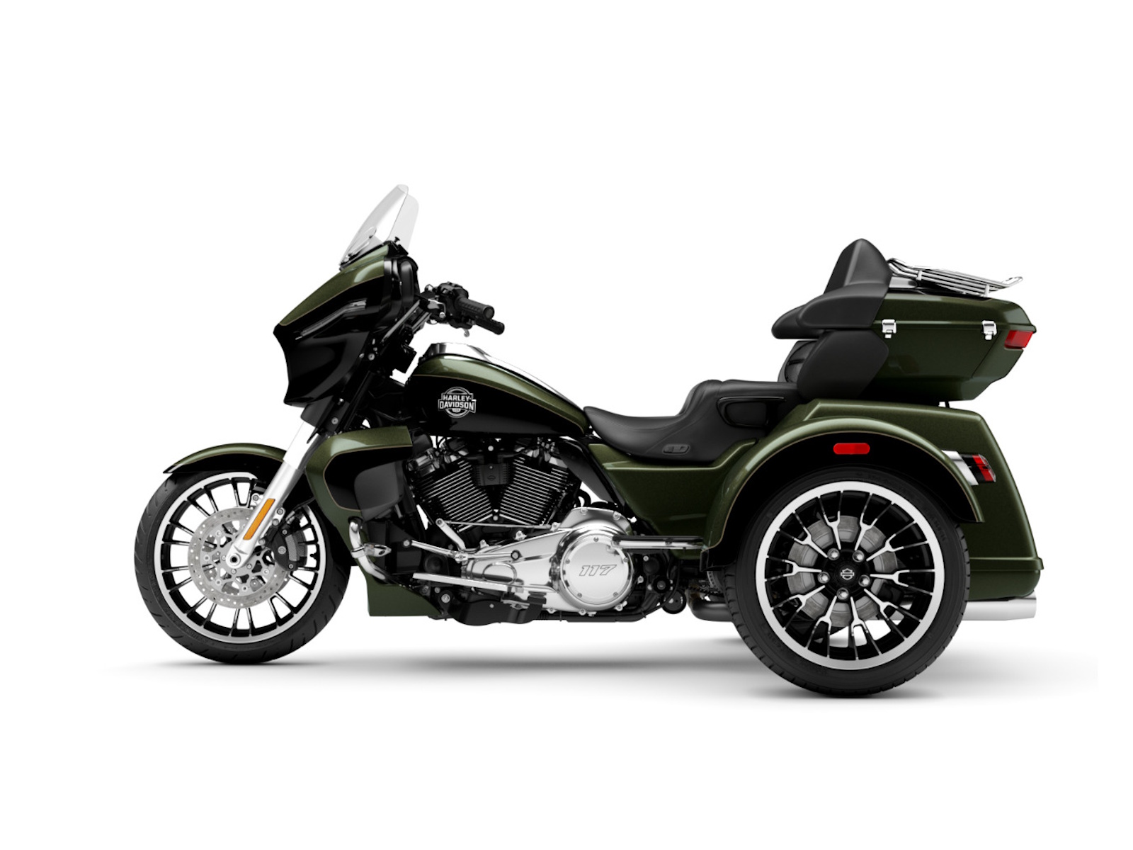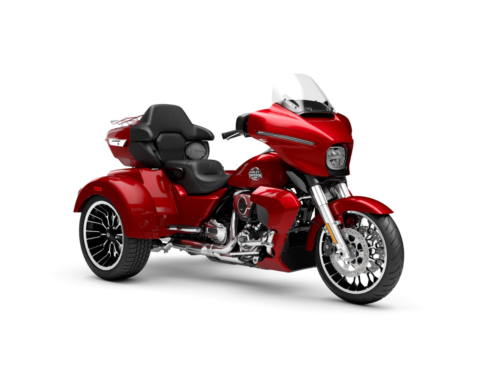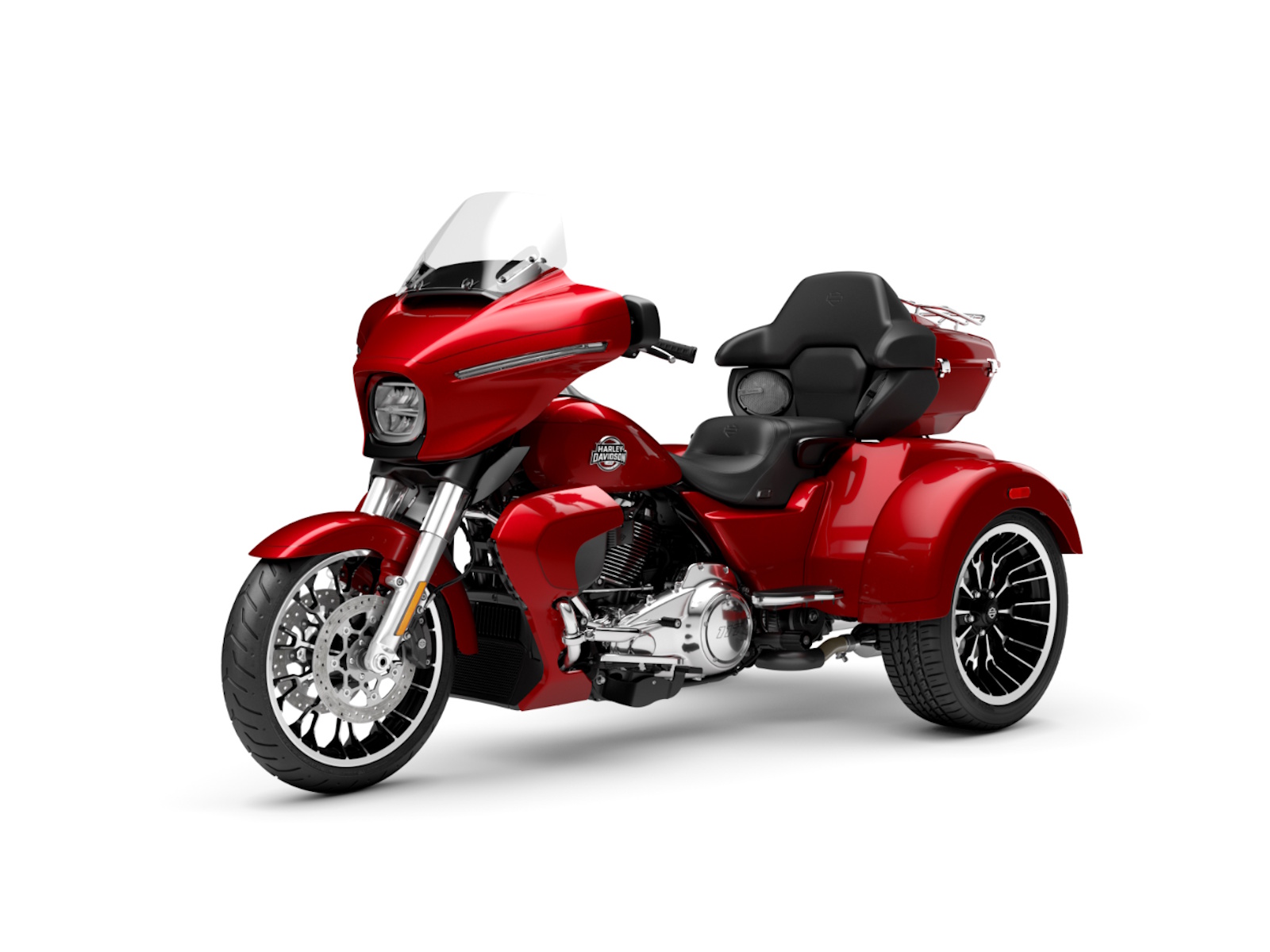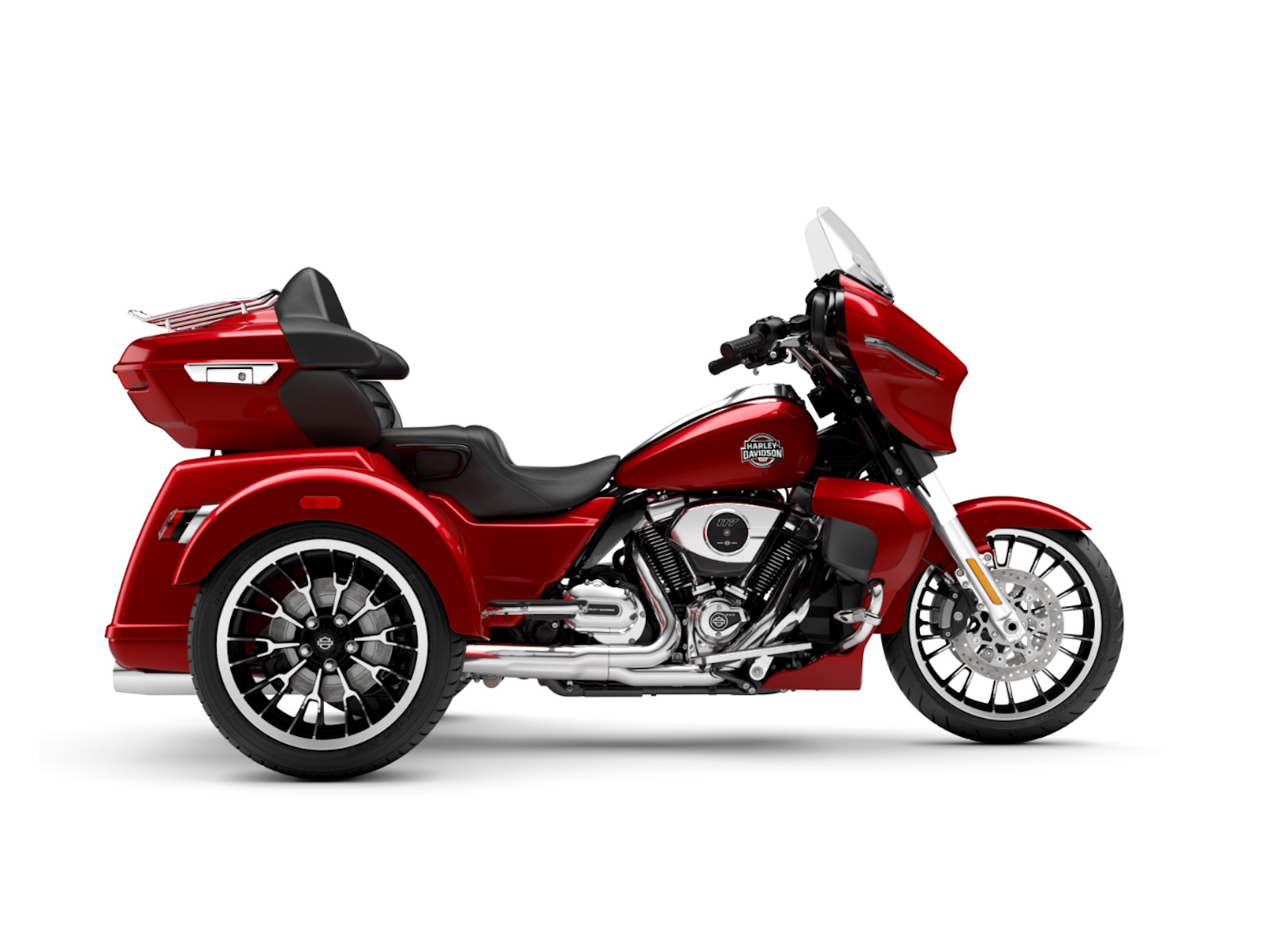Lightweight and premium in finish, the new cast aluminum wheels sharpen the stance and complement the trike’s sculpted lines, delivering confident handling when the road stretches on and surfaces change beneath you.