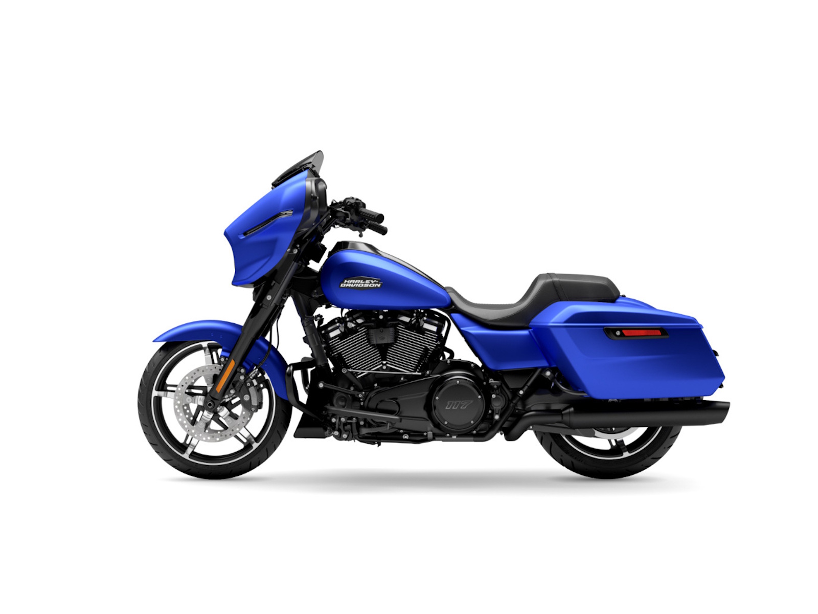 The Milwaukee-Eight 117 delivers 105 HP and 130 ft-lbs. of torque, with liquid-cooled heads and a center-mounted radiator to keep both performance and rider comfortable when the temps climb, whether you’re crawling through traffic or chasing sky.