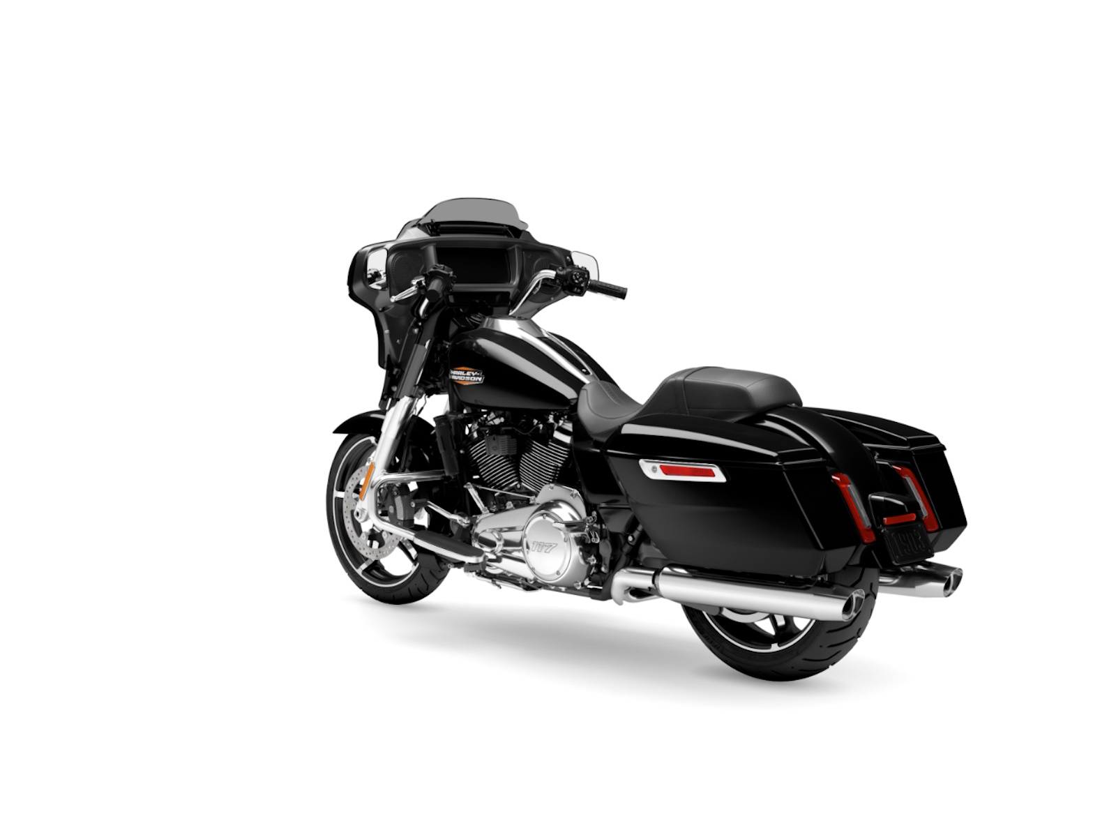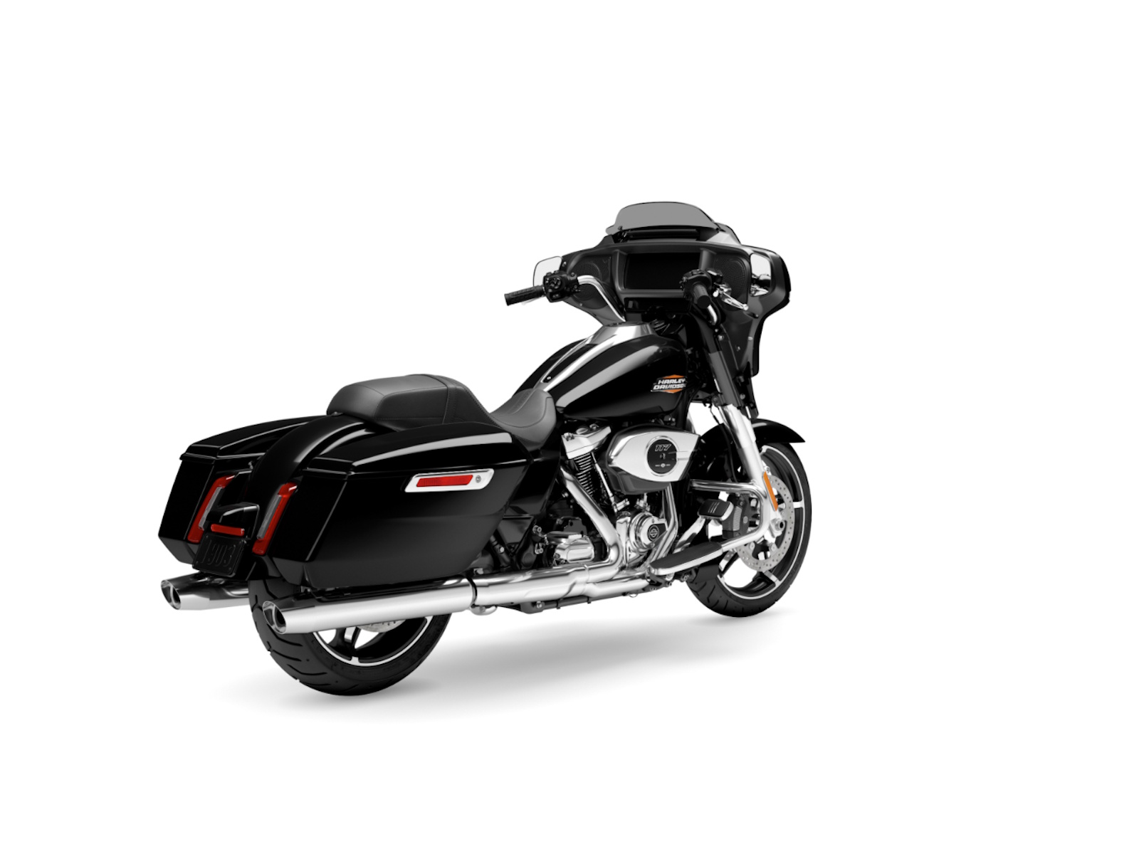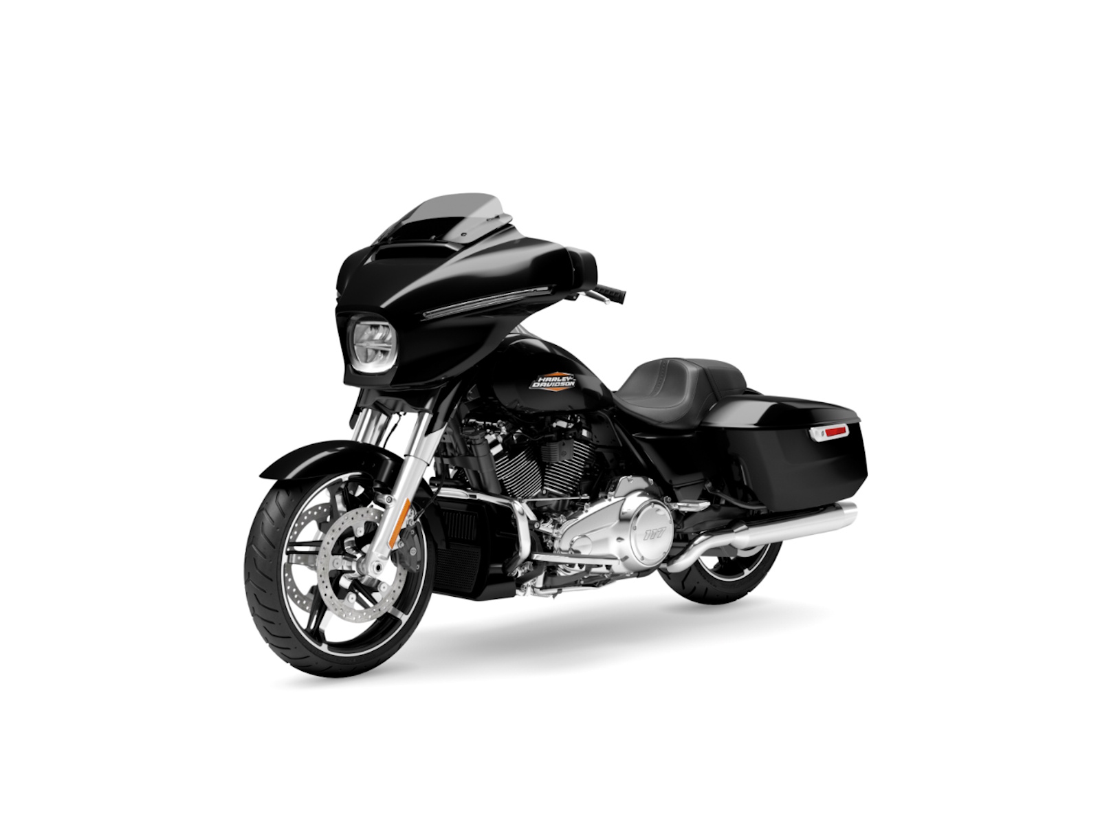 Daytime Running Light headlamp, integrated turn signals, and a slim LED taillight give the Street Glide a modern glow that stands out in traffic and engineered to fit the bike’s clean lines.