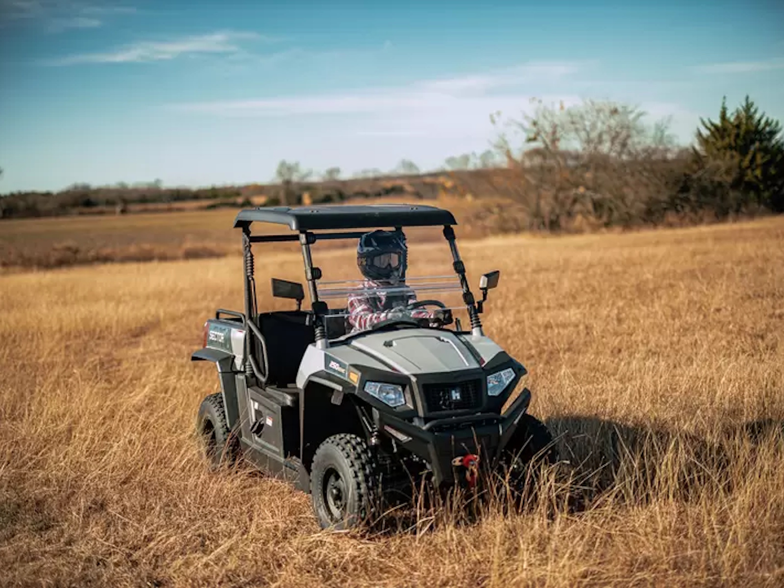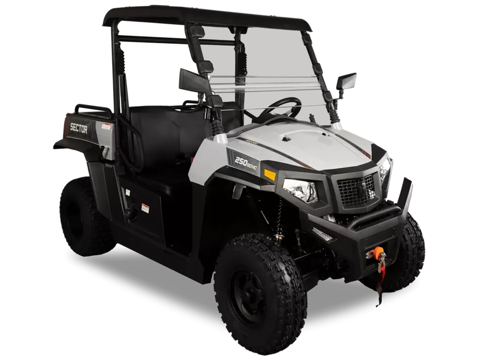 The Sector 250 is powered by a 229cc 4-Stroke – OHV Single Cylinder Engine with Low – High gears and Independent Dual A-Arm front suspension. Backed by a 2-Year Warranty, the Sector 250 comes equipped with a roof, windshield, turn signals, aluminum rims and a 2,500LB winch.
