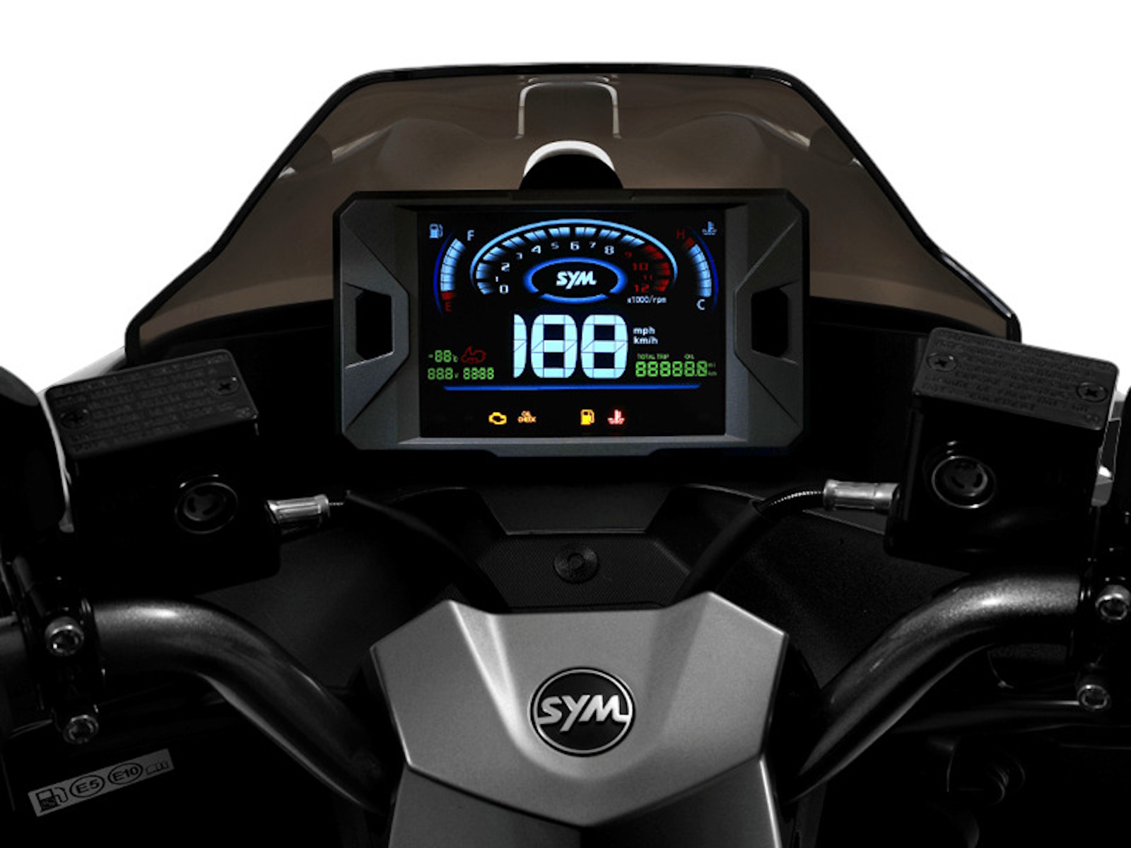 The new 5-inch color LCD dash contains the basic info usually seen on other SYM models: vehicle and engine speed, clock, battery voltage, coolant temperature gauge (125 liquid cooled), fuel gauge, side stand indicator, trip meters . Moreover, it integrates ambient temperature display that benefits daily use a lot.