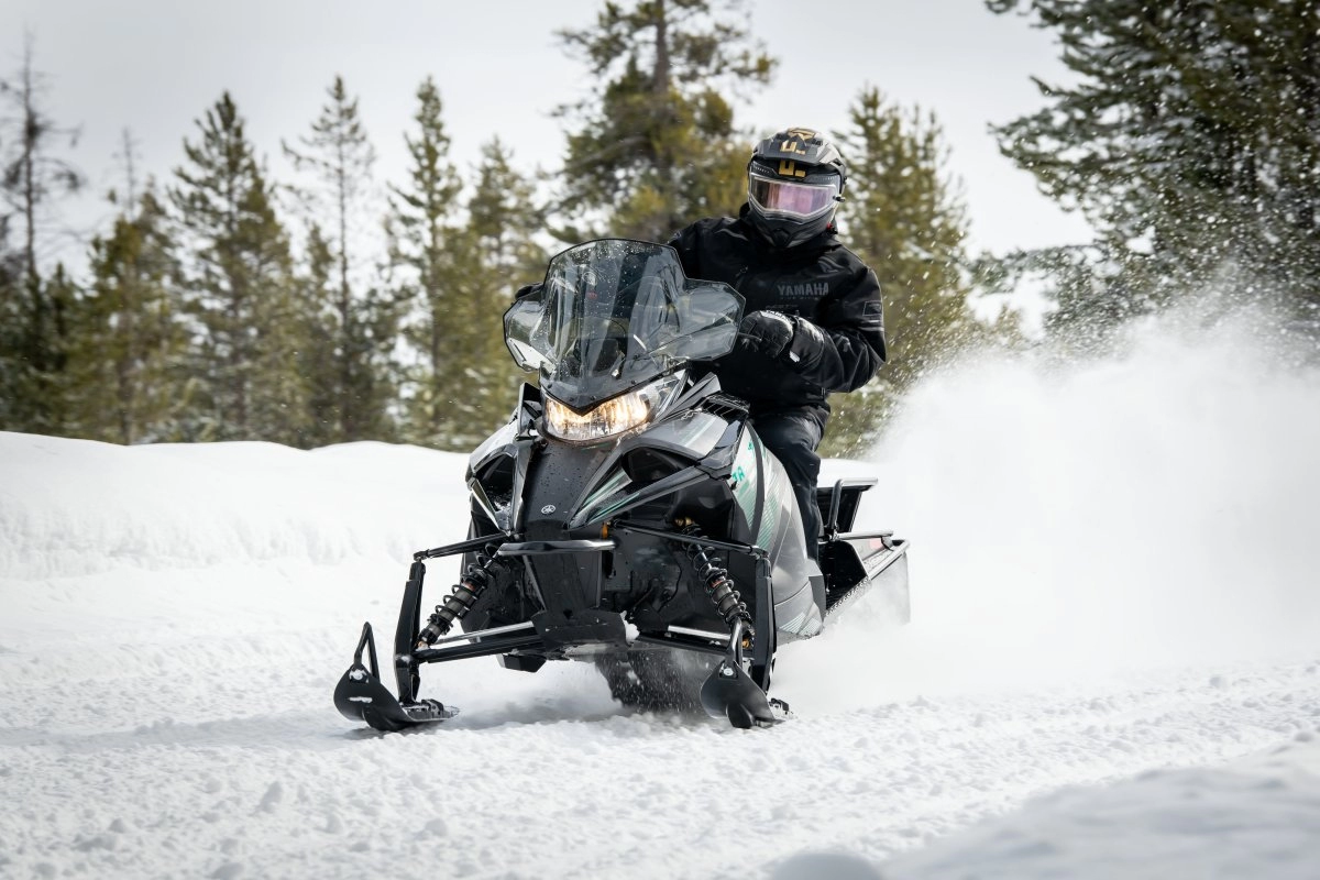 The needs of snowmobilers who use their machines as a way of life are vastly different than those who seek the thrill and adventure of recreational riding. Yamaha has a deep understanding of what it takes to get the job done in the extremes of winter. The simple design and dependability of the technically advanced Transporter 800 articulated long track fill these needs. At its heart is a two-stroke, 794cc engine with back-up recoil starting. Purposeful attributes like a rugged storage rack, sturdy tow hitch, long-range fuel capacity and functional protection from the elements are all provided to fit those unique needs