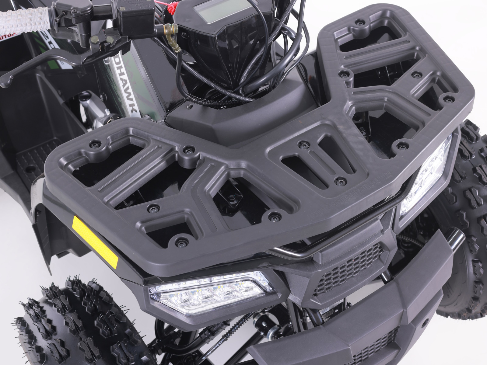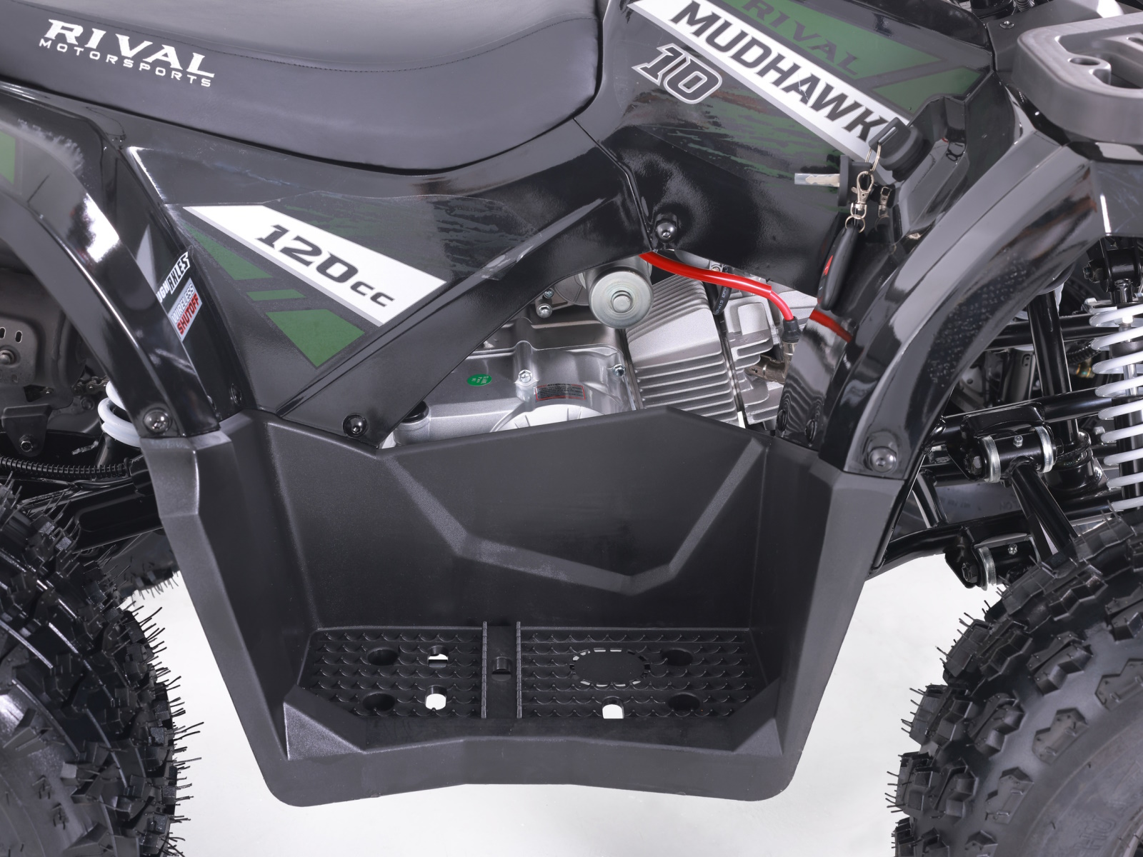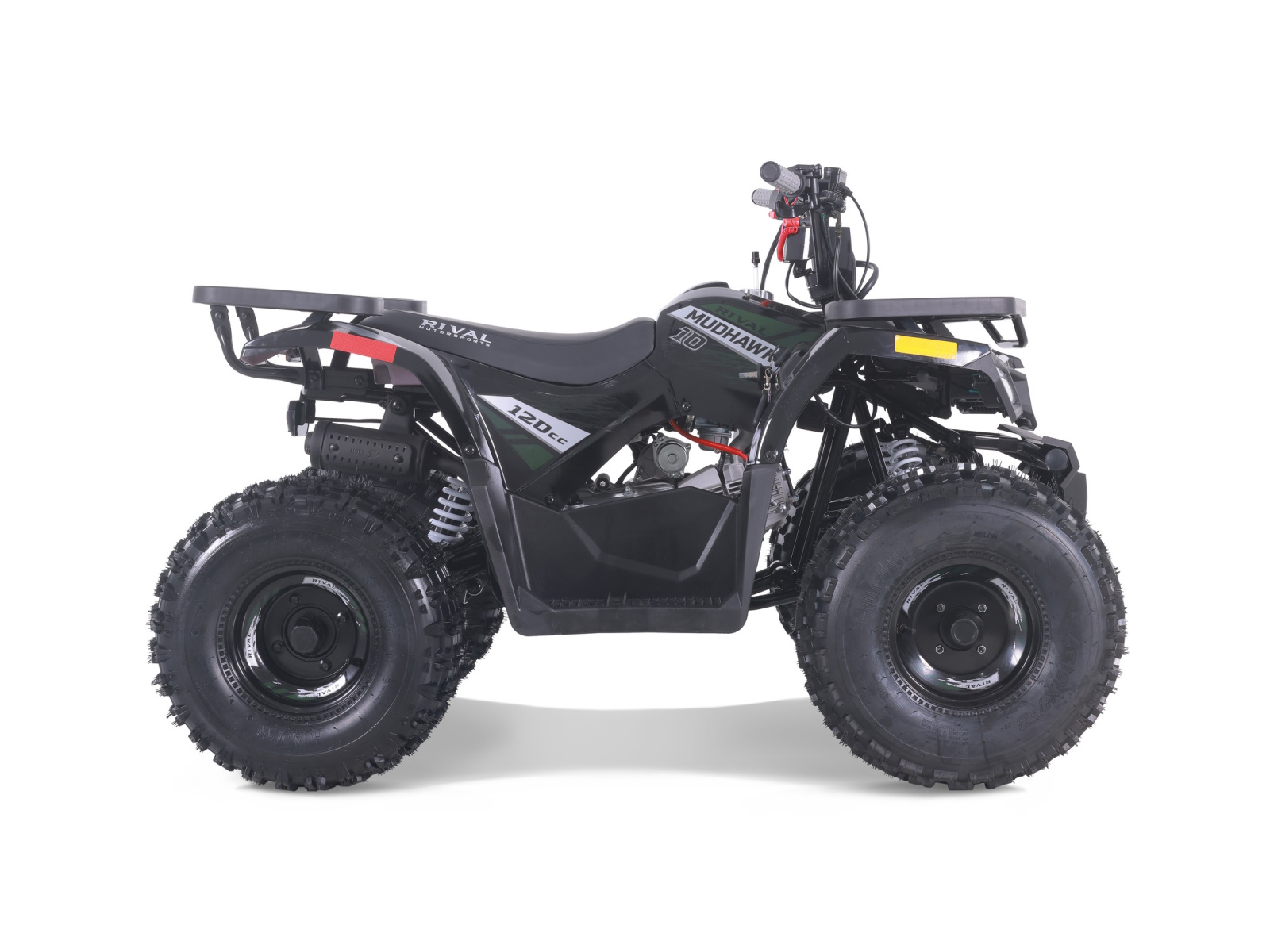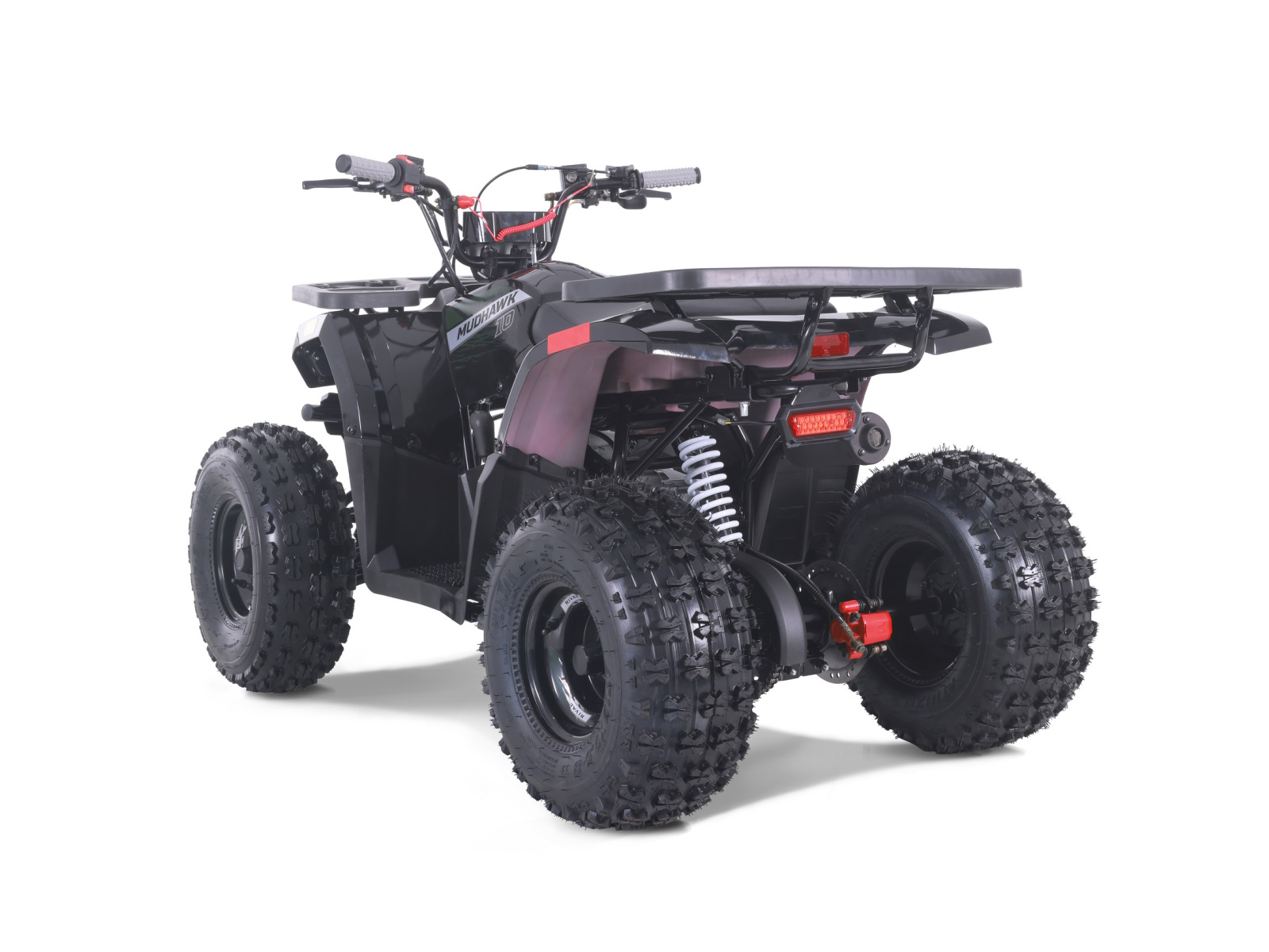 The Mudhawk 10 is back in action. While still fitted with our top notch safety features such as the throttle limiter and remote engine shut off, the Mudhawk 10 is sized for a more experienced youth rider aged 10 and up. Front and rear disk brakes provide consistent and easy stopping power, with brake levers designed specifically for smaller hands. The convenience of the electric start engine and automatic transmission will leave you plenty of time to load up the rear rack with all of your essentials before you hit the trails. From performance to aesthetics, it"s no wonder the Mudhawk 10 has bbecome one of our most popular and sought after off road vehicles.