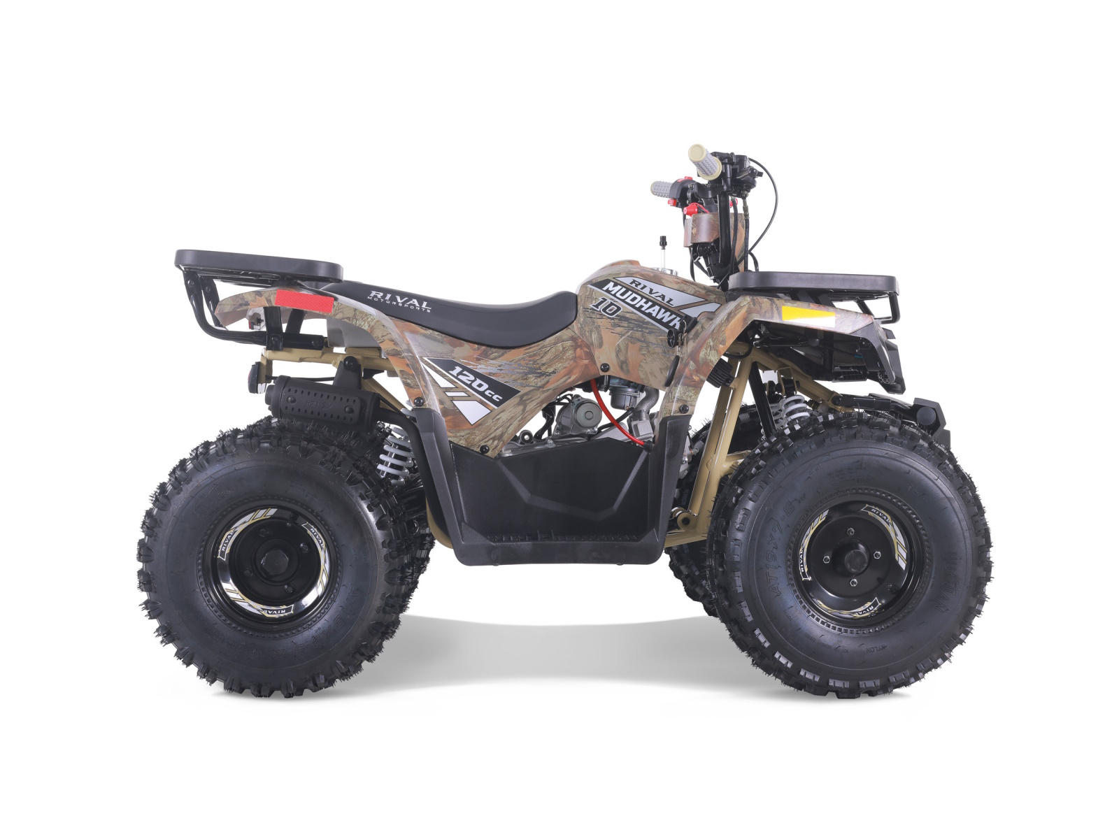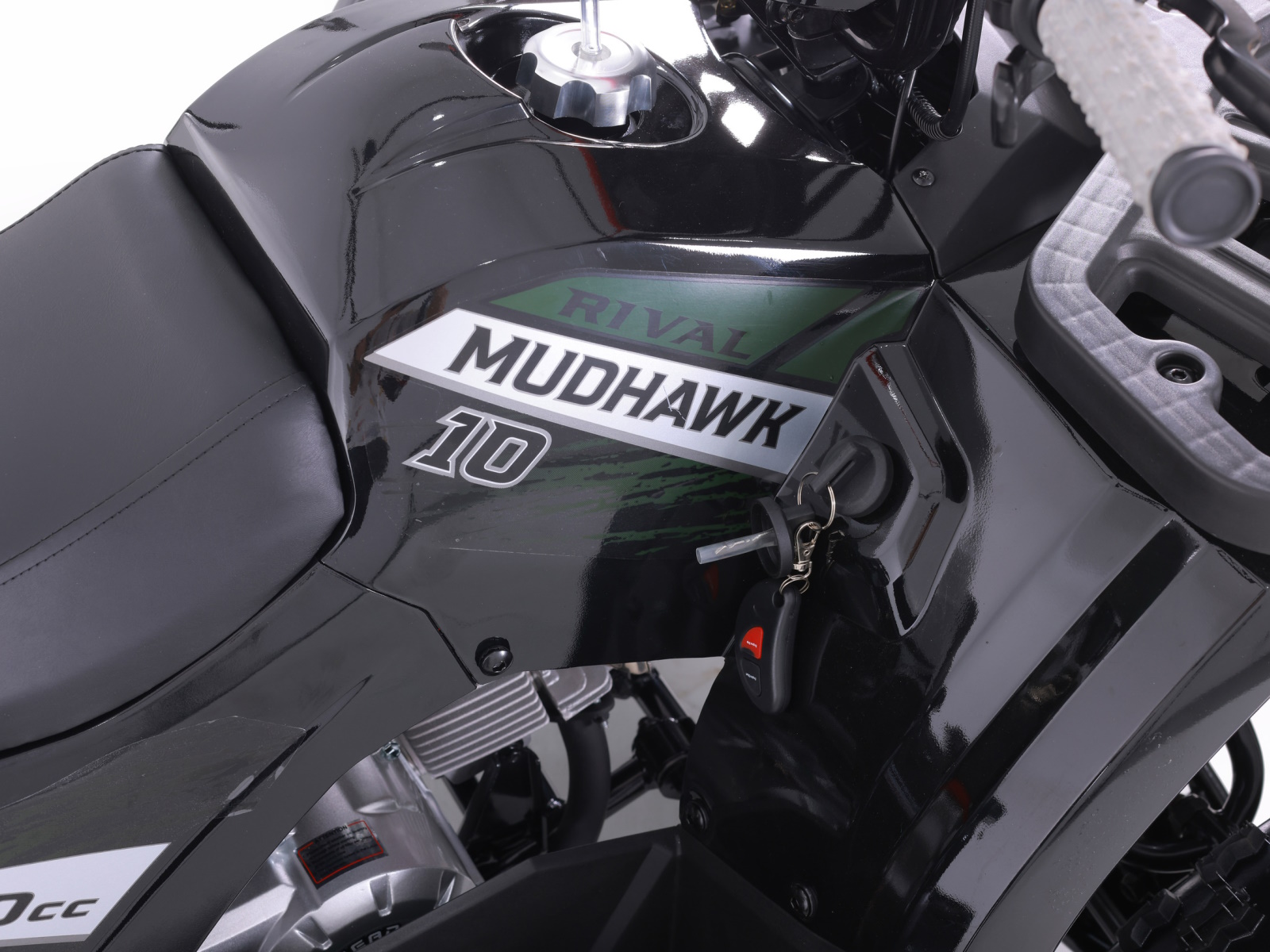 The Mudhawk 10 is back in action. While still fitted with our top notch safety features such as the throttle limiter and remote engine shut off, the Mudhawk 10 is sized for a more experienced youth rider aged 10 and up. Front and rear disk brakes provide consistent and easy stopping power, with brake levers designed specifically for smaller hands. The convenience of the electric start engine and automatic transmission will leave you plenty of time to load up the rear rack with all of your essentials before you hit the trails. From performance to aesthetics, it"s no wonder the Mudhawk 10 has bbecome one of our most popular and sought after off road vehicles.