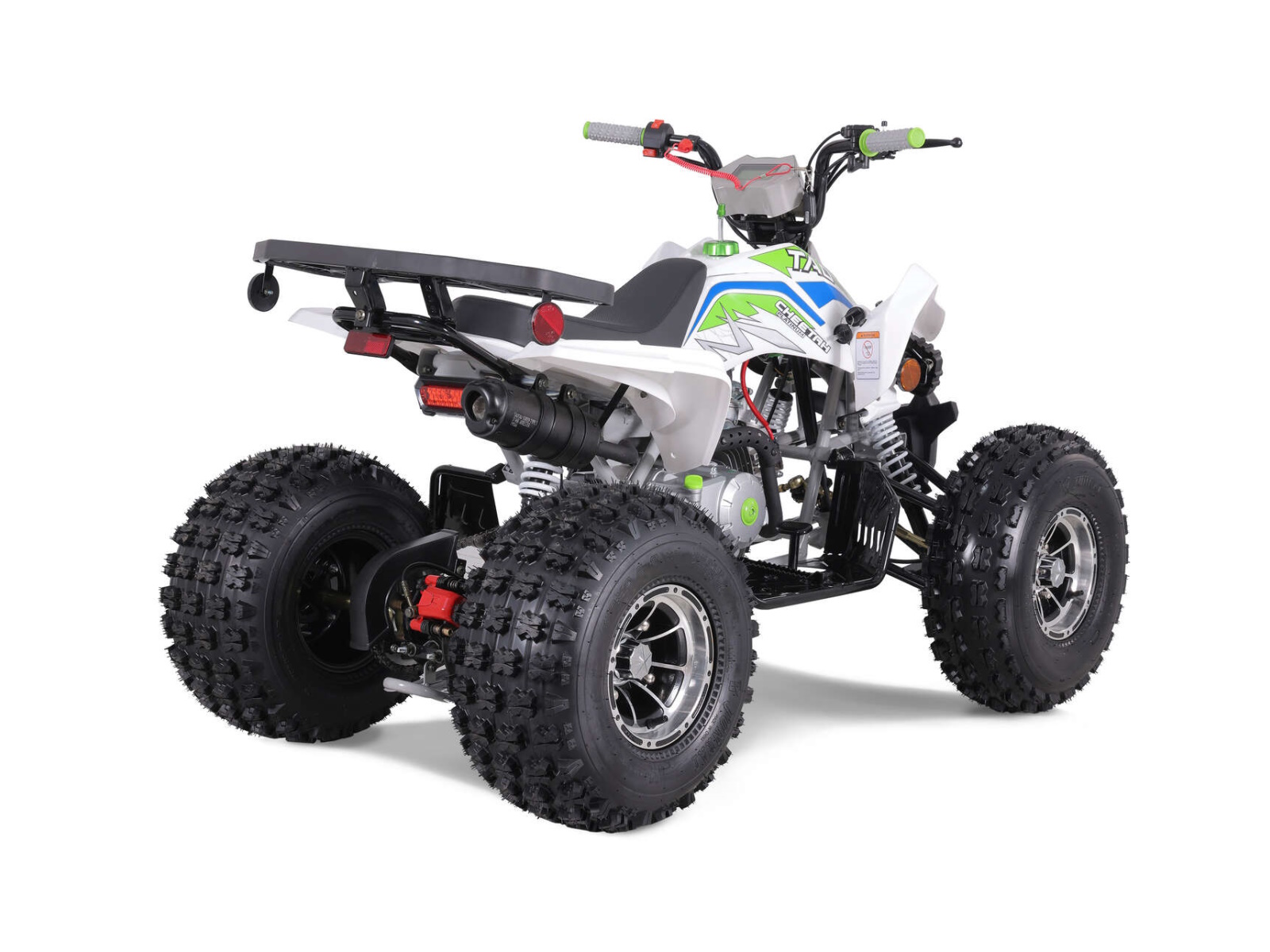 Powered by its 120cc fully automatic engine, early riders will have no problem learning to ride thanks to a convenient and recently redesigned ergonomic foot gear selector. Our standard safety features like the remote wireless shut off and speed governor along mean supervising adults can breathe a sigh of relief and the tether kill switch allows young riders to worry less and ride more. Built for both performance and fun, you’ll always be in first place riding the Cheetah Platinum.