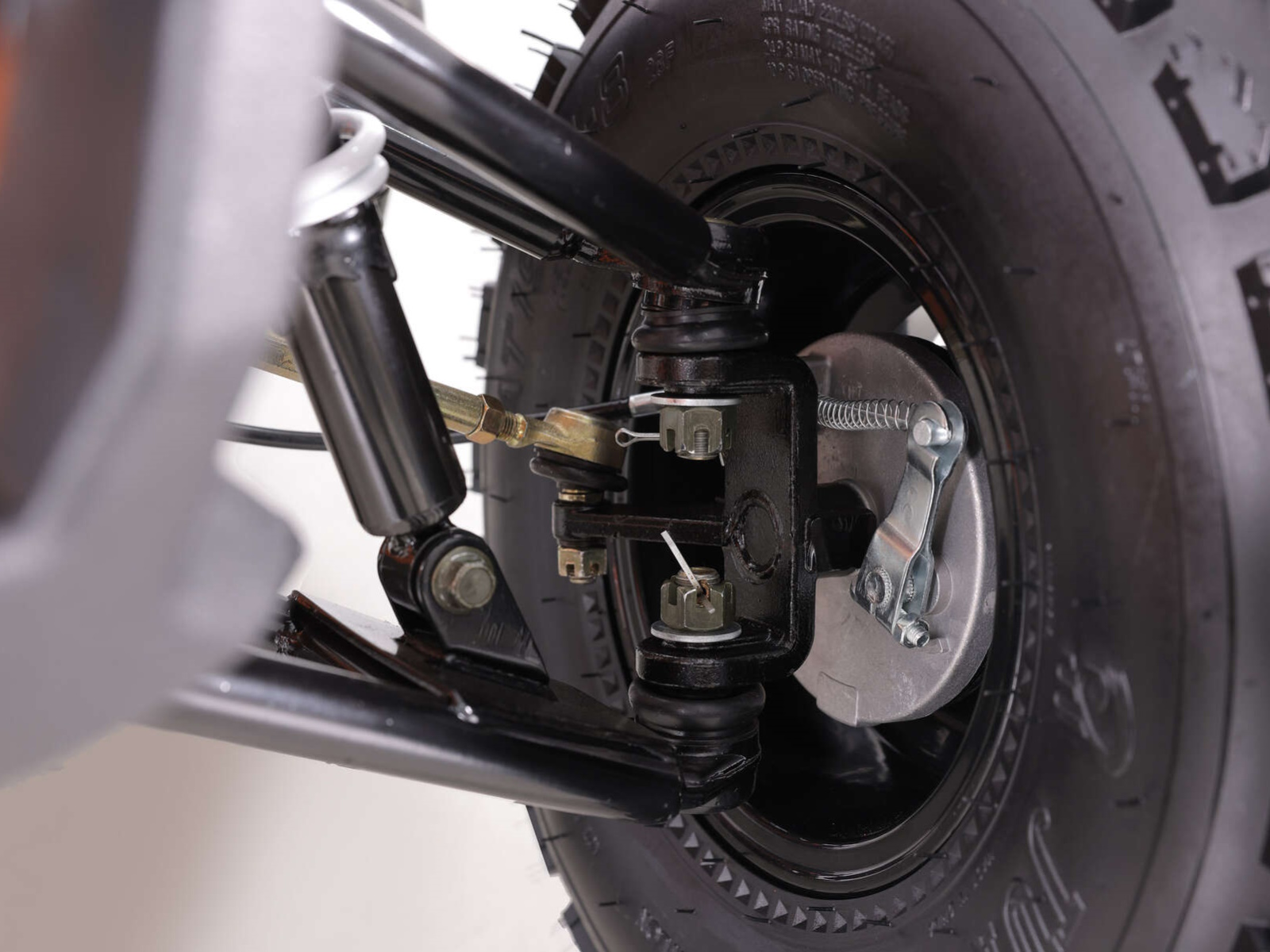 - Color matched metal swing arm skid plate