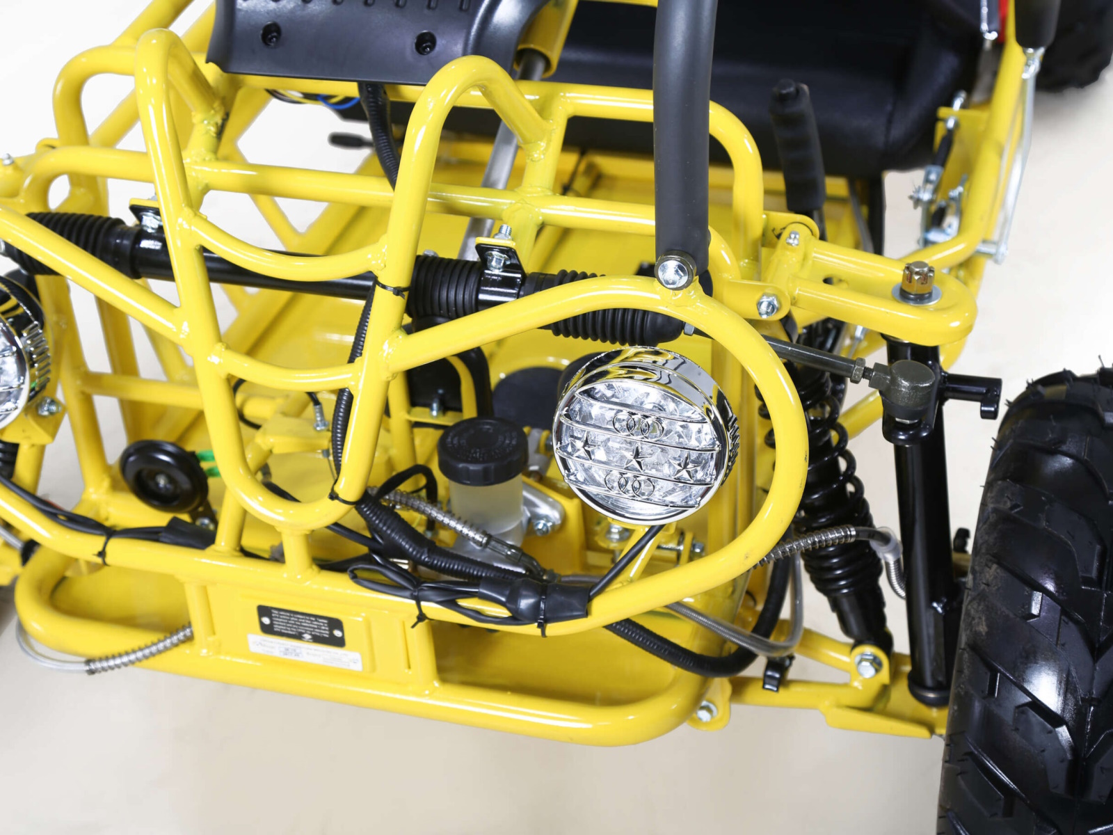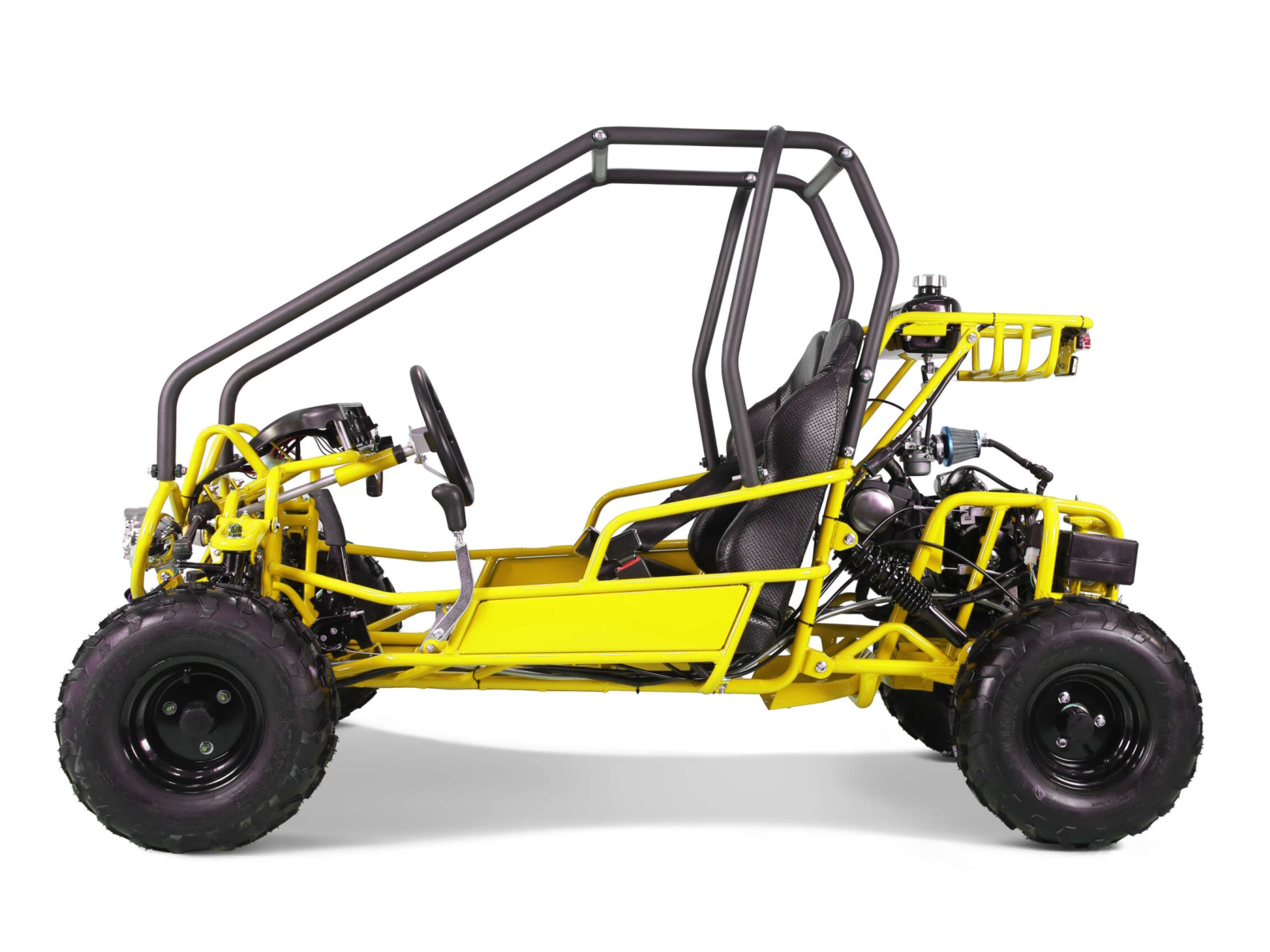 Being a youth go-kart, safety is always key. Ride worry-free inside the fully enclosed roll and securely fastened with a safety harness for both riders. A remote control shut-off can off the engine with a simple button push if learning is still in progress. With large tires and plenty of ground clearance, you won’t get stuck or high-centered. Rugged enough for big kids and accessible for smaller kids, the GK110’s perfect size makes it the number one choice for families ready for outdoor fun.