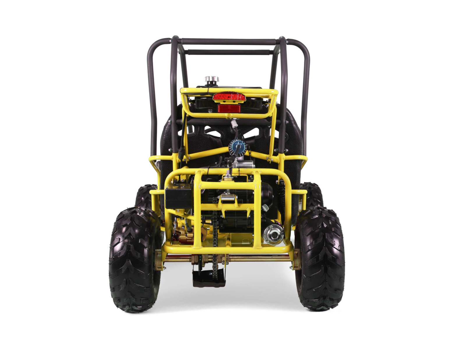 The GK110 comes standard with a reliable 110cc air-cooled four-stroke engine, with electric key start, and an automatic gearbox with the reverse gear. Multiple convenient features make the GK110 perfect for early riders getting the hang of go-karting. A digital gear indicator and easy-to-read pedals let you know your gear and which pedal to press when driving.