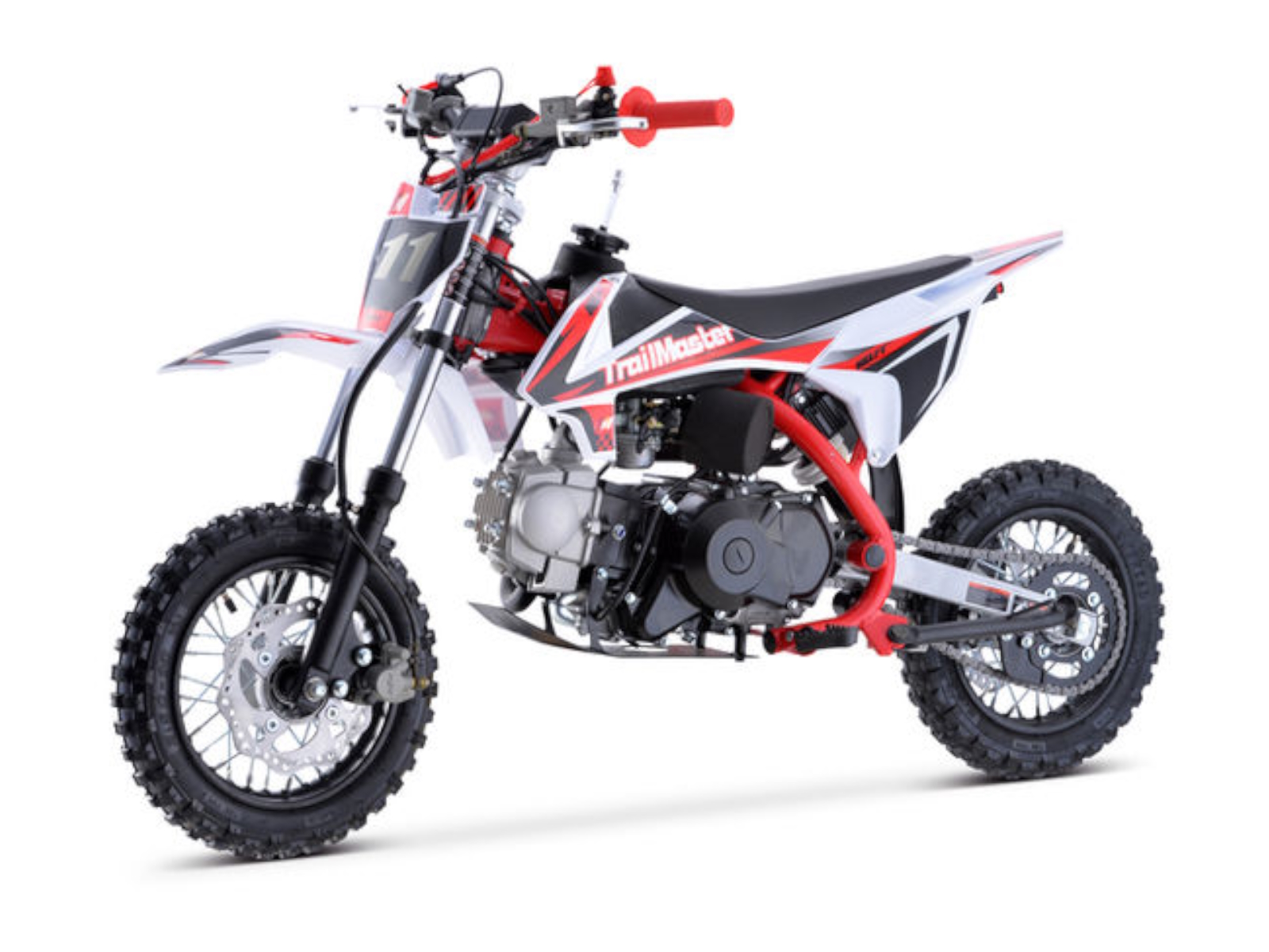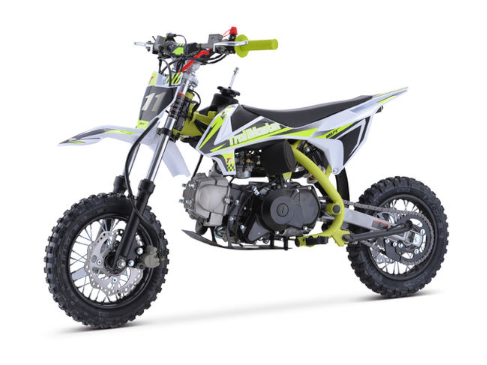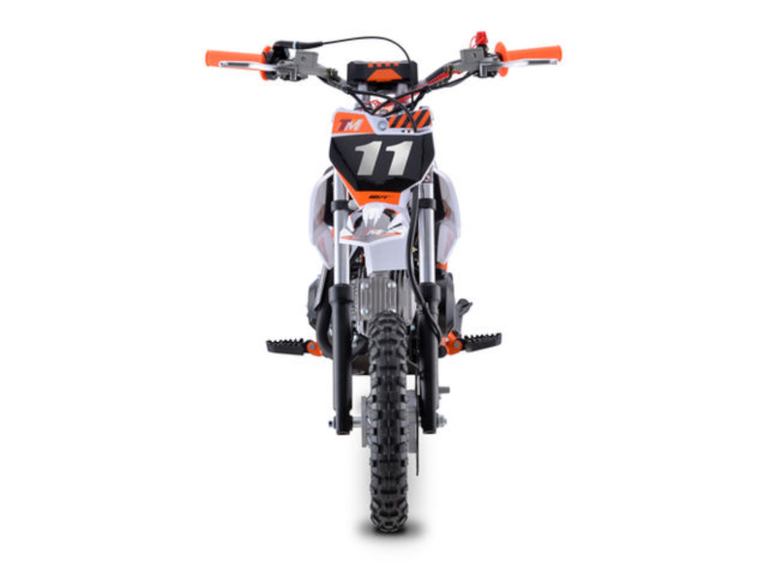 The TM 11‐110 (SEMI‐AUTO) is a great Junior size dirt bike. It has a high performance 110cc 4 stroke 6 hp engine with kick start and a top speed of around 35 MPH and a seat height of 24”. It is available in red, blue, green, and orange colors. The TM11 features a 4 speed SEMI‐Automatic transmission with front and rear disc brakes, 10” front & Rear Tire and a heavy duty frame built for durability! This is sure to be a HOT seller!