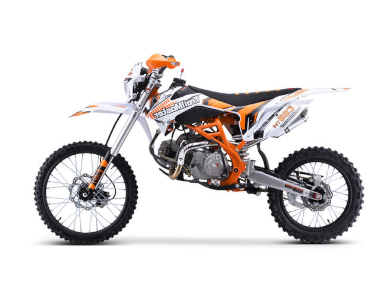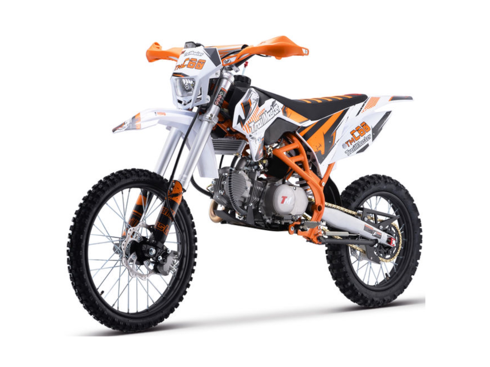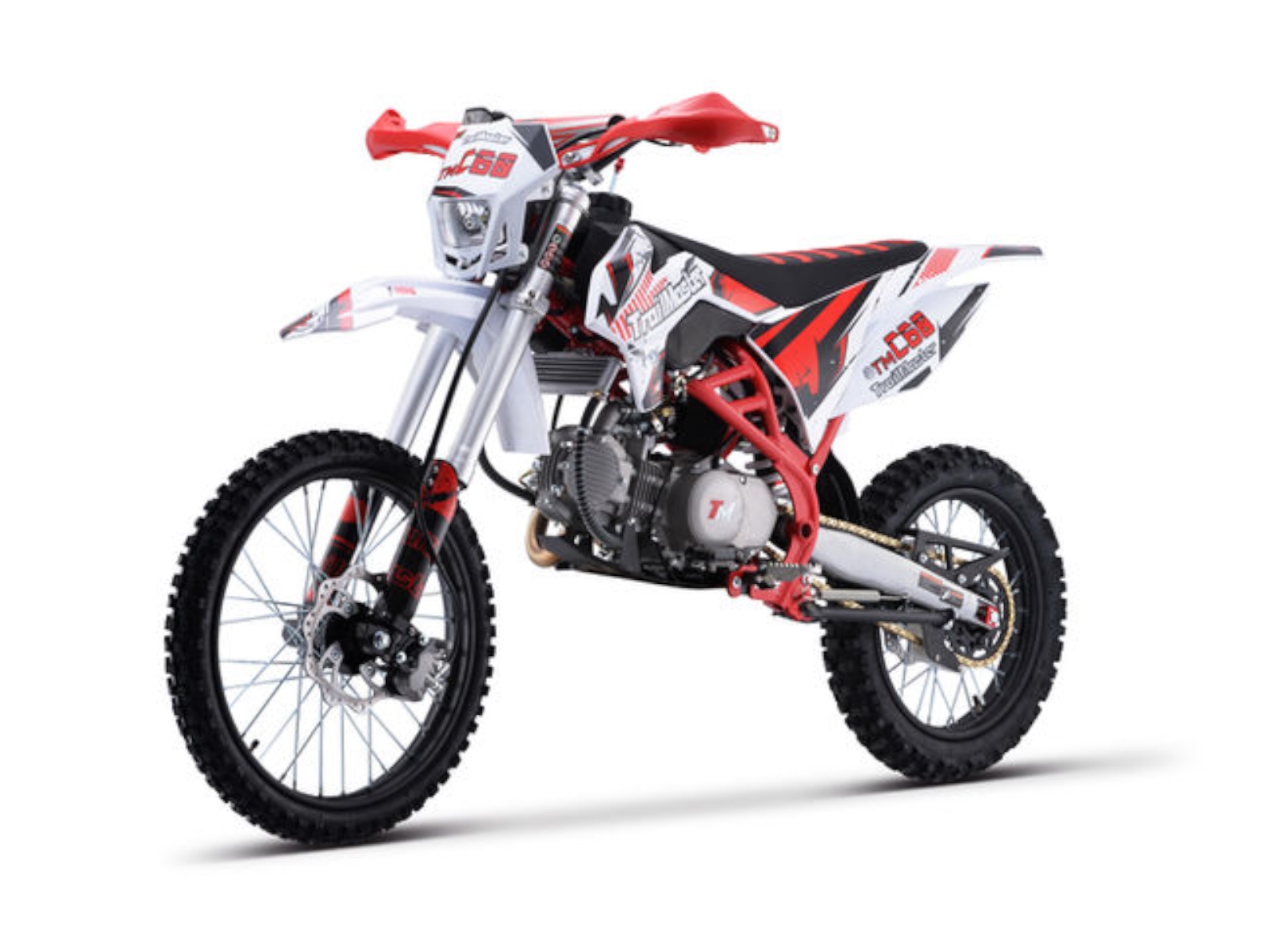 The TM C60 is a great mid size dirt bike. It has a high performance 156cc 4 stroke 14hp engine with kick start and a top speed of around 55 MPH and a seat height of 34.6”. It is available in red, green, and orange colors. The TM C60 features a 4 speed manual transmission with front and rear disc brakes, and inverted front shocks! This is sure to be a HOT seller! The bikes full on motocross ergonomics and race suspension system make handling feel natural and unforced, and help it navigate over almost any type of terrain. Electronic CDI ignition makes kick starting effortless, keeps the bike running smoothly in all gears and provides a broad, even power band. And at only 190 pounds, the 156cc engine can propel the motorcycle to speeds of 55 miles per hour.