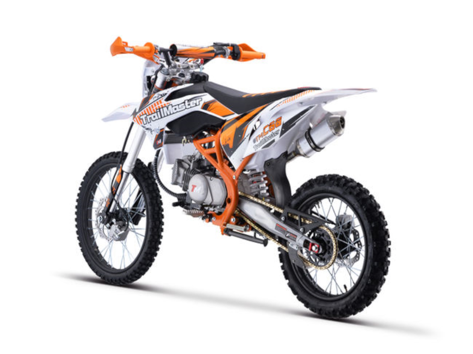 The TM C60 is a great mid size dirt bike. It has a high performance 156cc 4 stroke 14hp engine with kick start and a top speed of around 55 MPH and a seat height of 34.6”. It is available in red, green, and orange colors. The TM C60 features a 4 speed manual transmission with front and rear disc brakes, and inverted front shocks! This is sure to be a HOT seller! The bikes full on motocross ergonomics and race suspension system make handling feel natural and unforced, and help it navigate over almost any type of terrain. Electronic CDI ignition makes kick starting effortless, keeps the bike running smoothly in all gears and provides a broad, even power band. And at only 190 pounds, the 156cc engine can propel the motorcycle to speeds of 55 miles per hour.